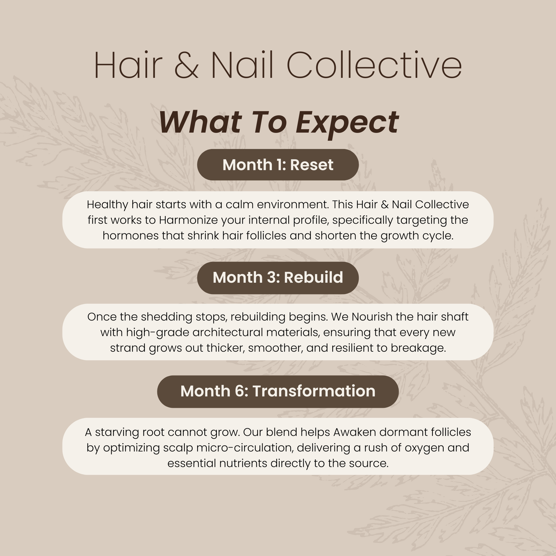 We blend science-backed vitamins and minerals like Biotin, Zinc, and Vitamin C with botanical extracts like Fo-Ti, Horsetail, Bamboo, and Saw Palmetto.